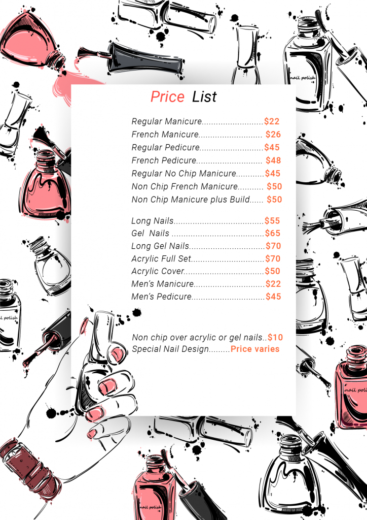 “I take pride in delivering the highest level of customer’s satisfaction. I aim to provide my clientele with the highest quality of nail services suited to each client’s needs. You will be met with a modern and relaxing atmosphere in which every detail of your experience is attended with care and professionalism. Whether it is manicure, pedicure, nail enhancements my commitment entails building enduring and rewarding relationships with my clients. This is my philosophy as a nail artist.”
